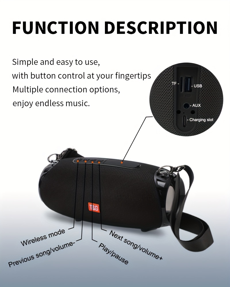 T&G TG534 Portable Wireless Stereo Speaker -IPX4 water resistant, Dual-Speaker TWS System with Subwoofer, Hands-Free Calling, FM Radio, TF Card & USB Playback - Compatible with Smartphones, Tablets, TVs - Ideal Gift for Music Lovers, Portable